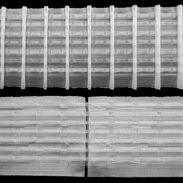 Часто прозрачная шторная лента собирается с помощью лески, которая остается практически невидимой через легкие и прозрачные ткани. Прозрачную шторную ленту на леске, как правило пришивают на тюль, вуаль, органзу.